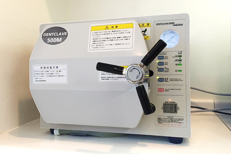 ハンドピースも専用の高圧蒸気滅菌器で、微生物を殺滅します!